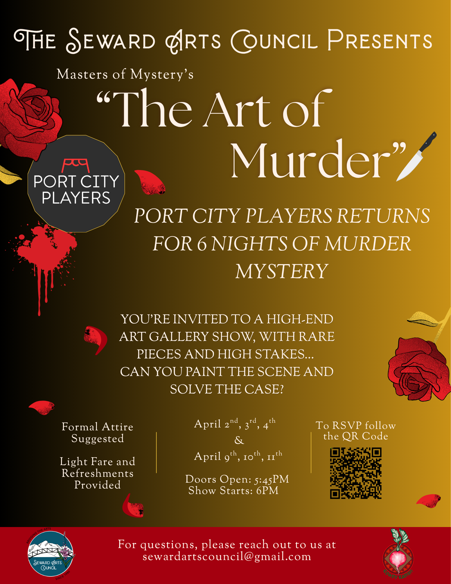 Step into an evening of intrigue, laughter, and unforgettable fun with the Port City Players’ Murder Mystery Series! With six unique performance, you’ll never experience the same mystery twice.